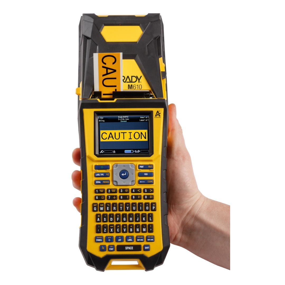 De M610 Labelprinter (voorheen de BMP61) voldoet aan al uw verwachtingen. Hij is uw betrouwbare identificatieprinter, dag na dag, het hele jaar door. De printer beschikt over meerdere gebruikersinterfaces, een touchscreen, meerdere aansluitmogelijkheden en verschillende manieren om uw gegevens te beheren en op te slaan. Hij print bijzonder snel continue, gestanste labels en bulkrollen tot 50,8 mm. Ook op maat. Deze printer wordt geleverd met de gratis Brady Workstation Basisontwerp Suite waarmee u onmiddellijk professionele labels kunt ontwerpen.