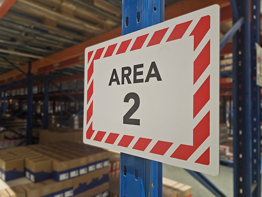 Areaborden geven bepaalde zones aan in een magazijn. Je hangt ze hoog op zodat ze vanaf de grond en op afstand al goed zichtbaar zijn. De areaborden worden op maat gemaakt en worden vaak voorzien van een duidelijke tekst die aangeeft welke werkzone waar te vinden is. Zo kan er snel de juiste route gekozen worden door de werknemers en wordt efficiënt werken bevordert. Wij voorzien de borden naar wens ook van barcodes, QR codes en logo’s en zelfs reflecterende areaborden zijn mogelijk.