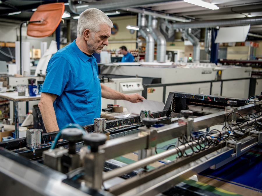 Wist u dat wij een eigen zeefdrukkerij in huis hebben? Jazeker! Onze collega Rob is al jaren onze vaste kracht op de zeefdrukkerij en is dankzij zijn jarenlange ervaring een échte specialist in zeefdrukken!